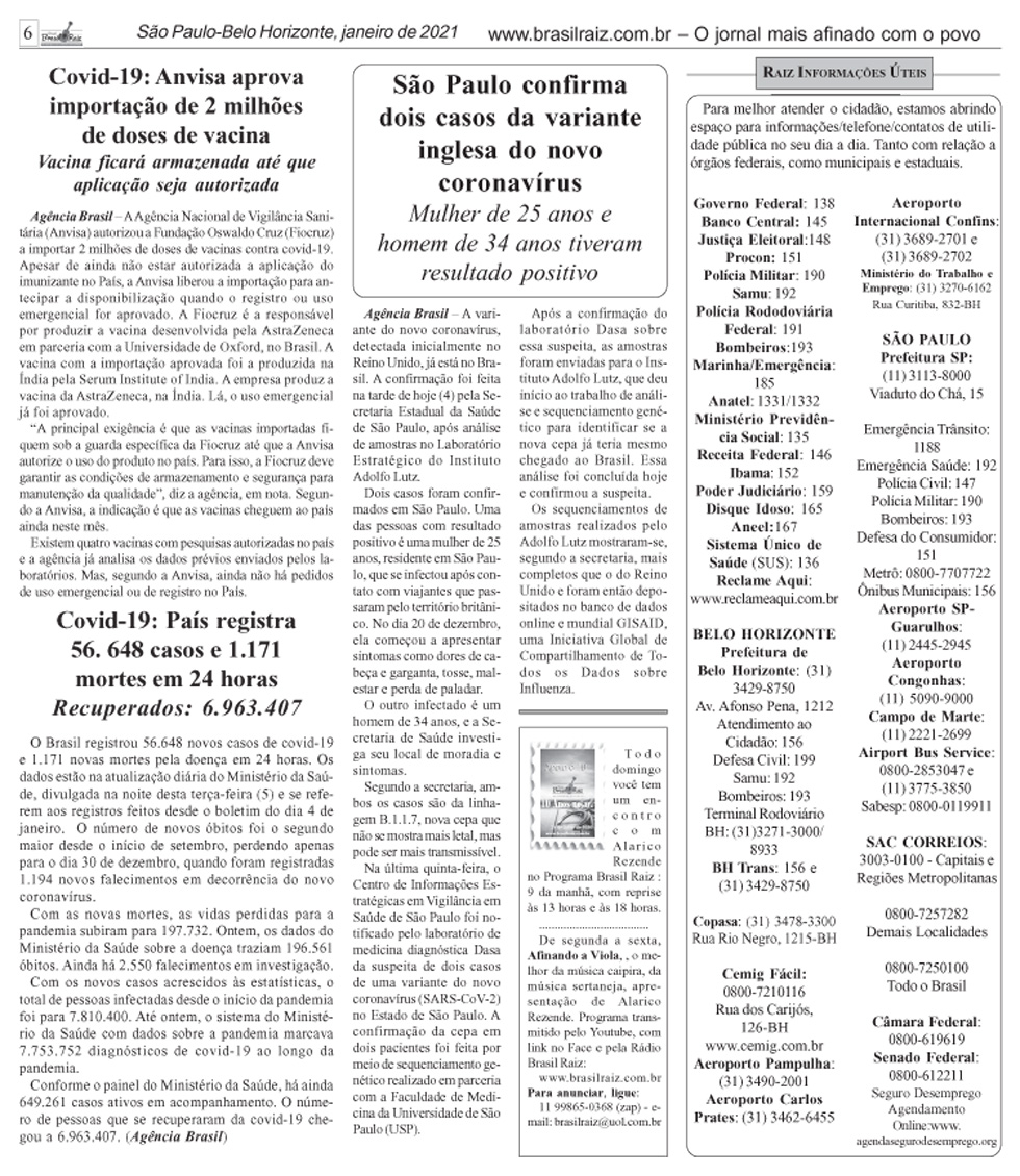 BRASIL RAIZ – edição n° 213 – São Paulo-Belo Horizonte – janeiro de 2021 - pag6 voltar