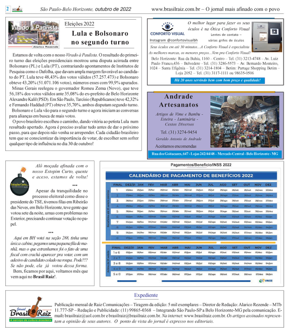 BRASIL RAIZ – edição n° 234– São Paulo-Belo Horizonte – outubro de 2022 - pag2 voltar